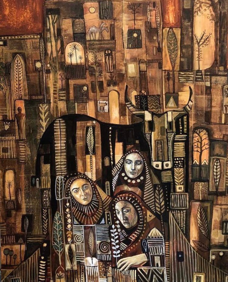 وأضاف (أحاول أن أعبر في لوحاتي عن الواقع العراقي والواقع المحيط بالعراق من أحداث وتغيرات دراماتيكية كذلك ما تعيشه المرأة العراقية في بلدنا كونها عانت من الحروب والفقدان، وقد حاولت أن أعبر عنها أحيانا بالحركة أو بالتكنيك واستخدام الخامات والمواد المختلفة في انتاج الأعمال، كما أضفت بعض الأمور التي تعطي العمل حركة وقوة تعبيرية، كاستخدام مفردات واشكال مختلفة مثل الحمامة، الغراب، الذئب، الحصان، والثور لما تحمله من دلالات ورموز تساعد على إيصال ما أرغب بطرحه في لوحاتي).