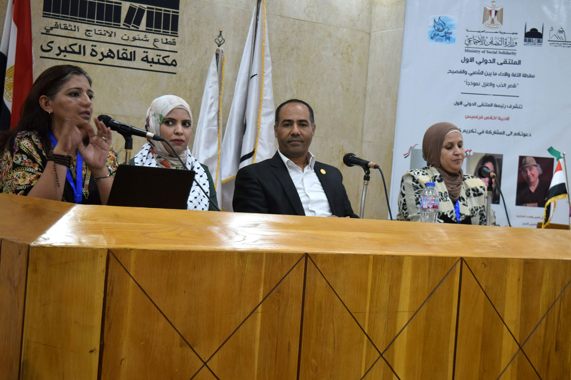 بدأت فعاليات الجلسة الثالثة – بإدارة الشاعرة العراقية الدكتورة نداء عادل – بمشاركة بحثية من أ. د. أحمد جريو حول شعر البكائيات في صعيد مصر، تلتها مشاركة بحثية أخرى من الدكتورة عبير خالد من سوريا وكانت عن فن الواو بصعيد مصر، ثم قام الفنان التشكيلي يامن صعب بإظهار الجانب الثان من شخصيته الفنية بإلقاء الشعر وبدأ مشاركته بقصيدة عن البطلة الفلسطينية عهد التميمي، ثم جاء دور الشاعرة السكندرية هالة الفحام التي استهلت مشاركتها بقصيدة بعنوان بنت بحري”.