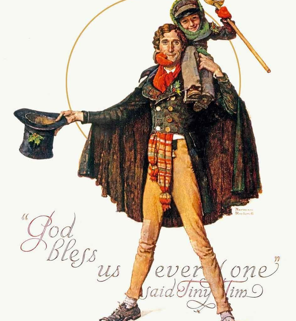 5. تيني تيم في رواية “ترنيمة عيد الميلاد” (1843) بريشة نورمان روكويل، 1934