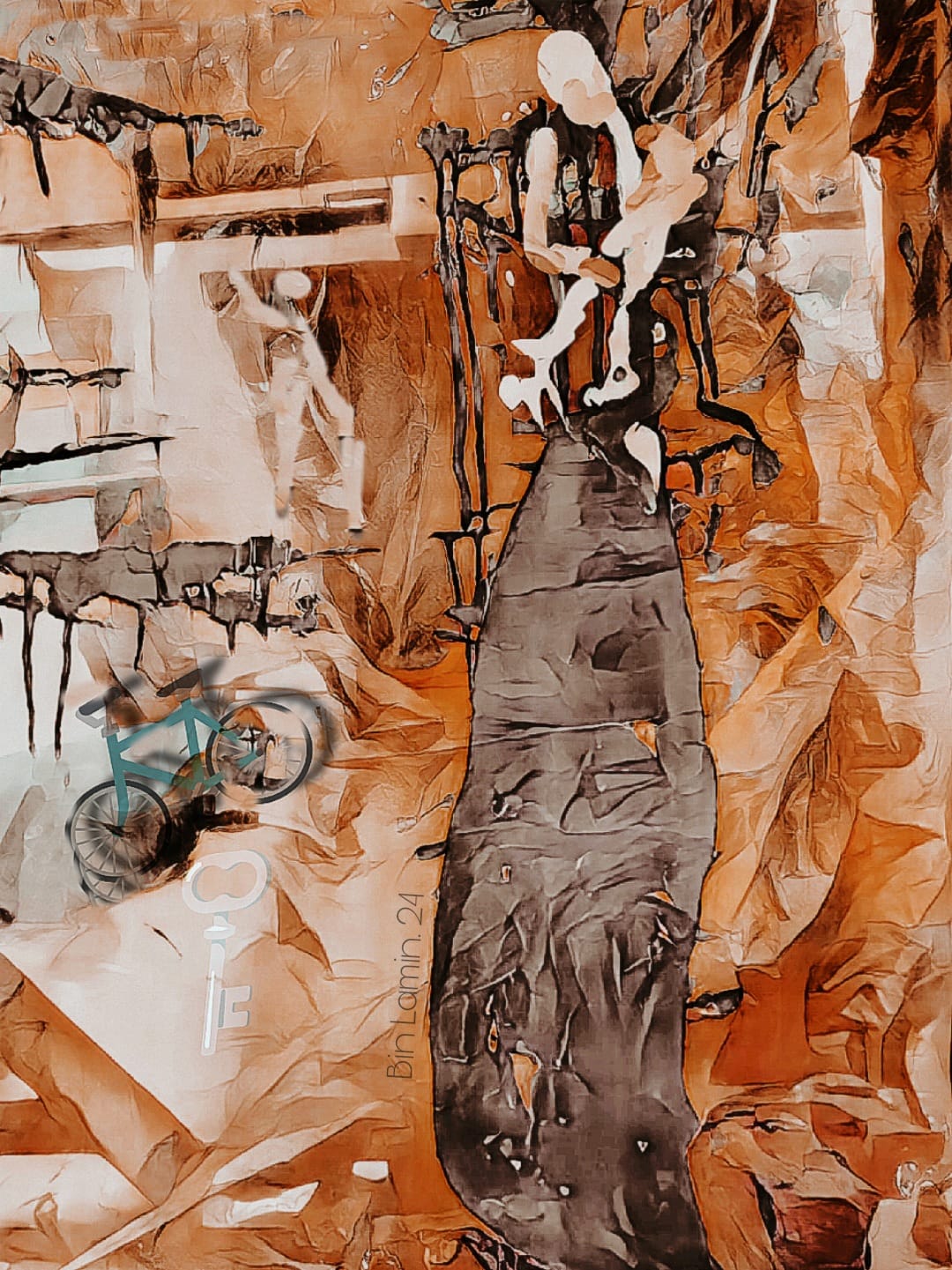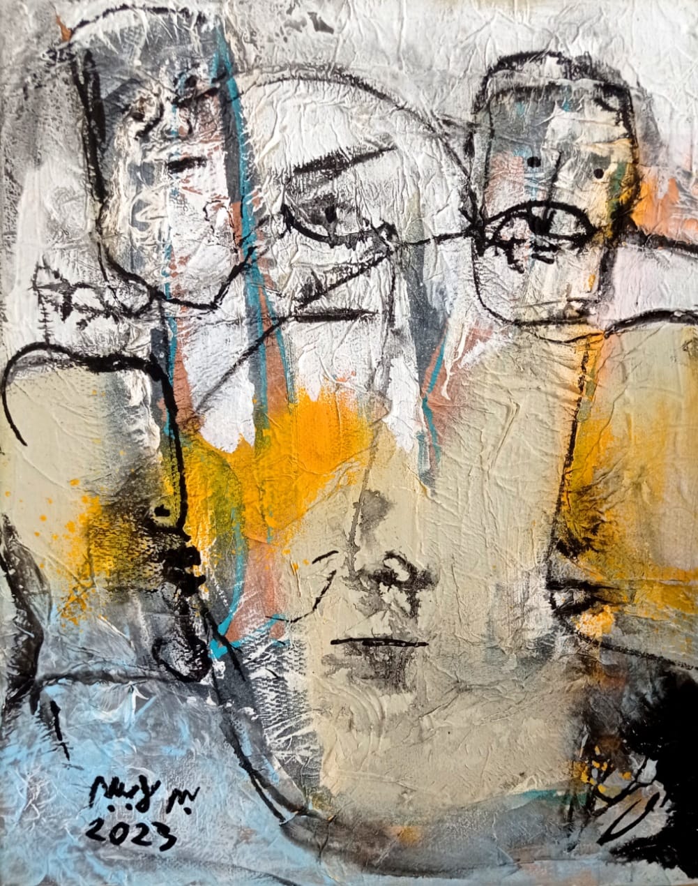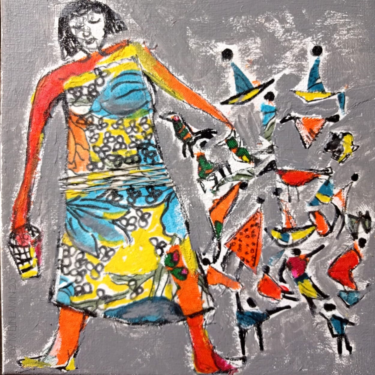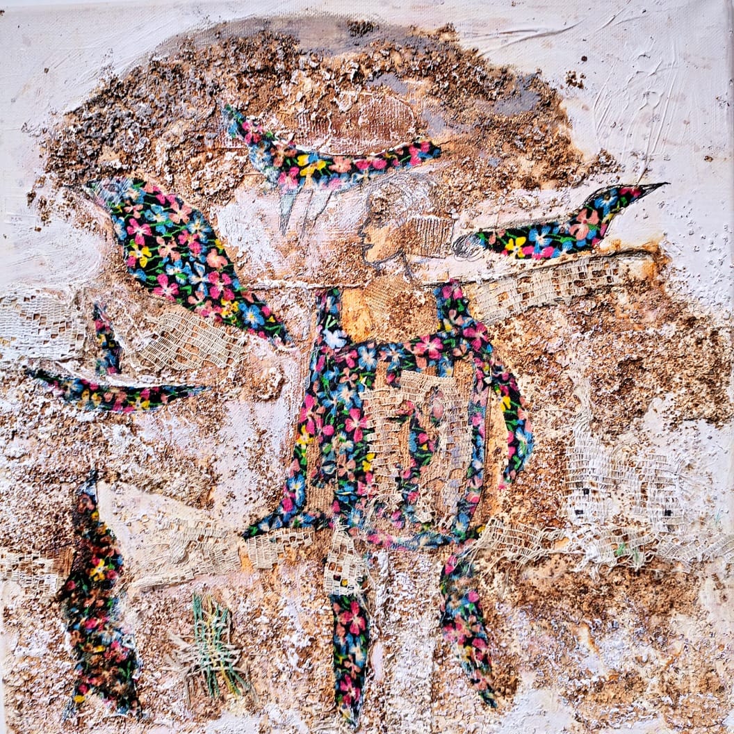 • فتاة فاردة الأجنحة Girl spreading her wings • أكريليك/كولاج/معاجين على القماش Acrylic، collage & pastes on Canvas 50×50 cm 2023