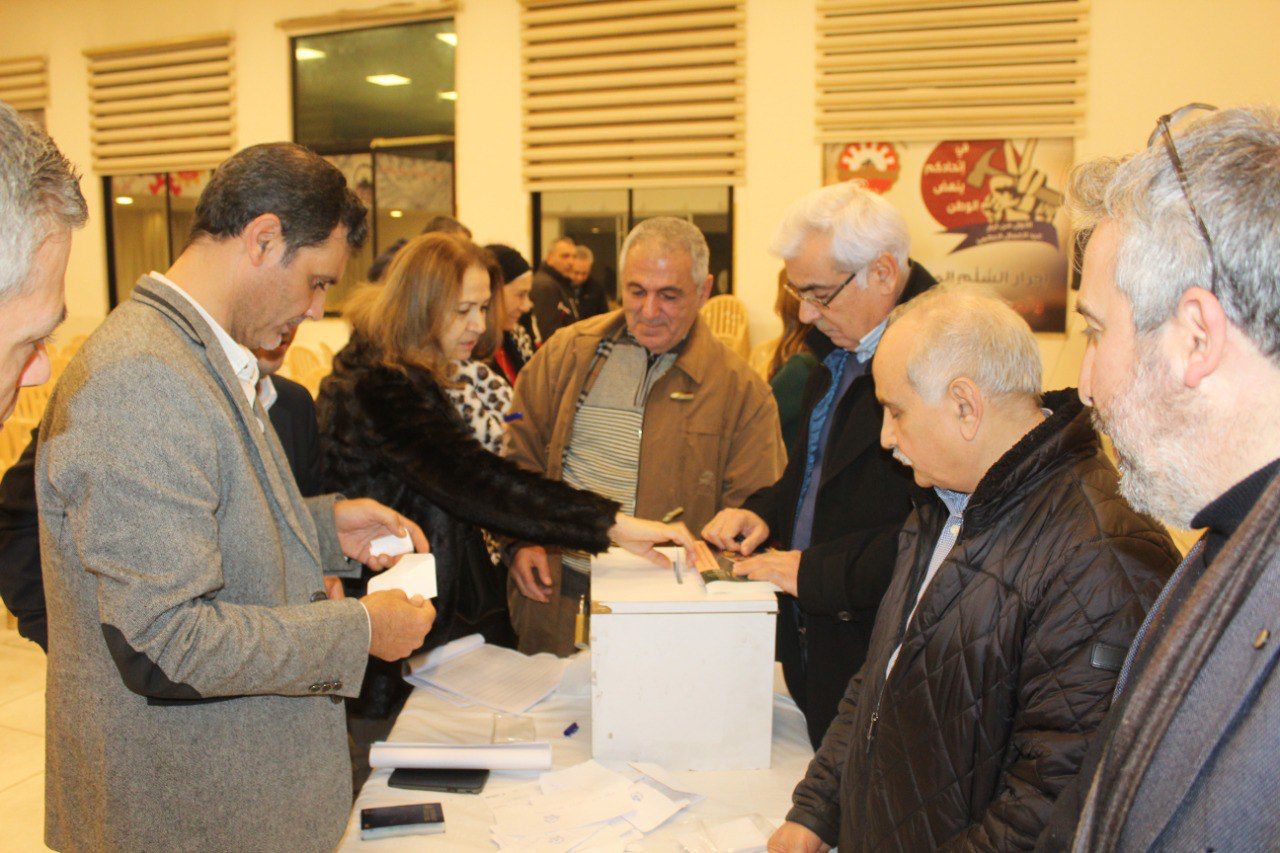 وبعد تلاوة البيان العامّ من الأمين العامّ السابق الدكتور إلياس زغيب، والبيان المالي من أمين الصندوق السابق الأستاذ مكرم غصوب، وبراءة ذمّة الهيئة الإدارية السابقة، جرت الانتخابات في جوٍّ ديمقراطيٍّ تنافسيٍّ بين لائحتين، أولاهما لائحة النهوض الثقافي برئاسة الدكتور أحمد محمود نزّال، وثانيتهما لائحة الوحدة النقابية الوطنية برئاسة الدكتور ديزيره سقّال.